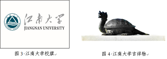 中文校名字體采用毛澤東書法集字“江南大學”。